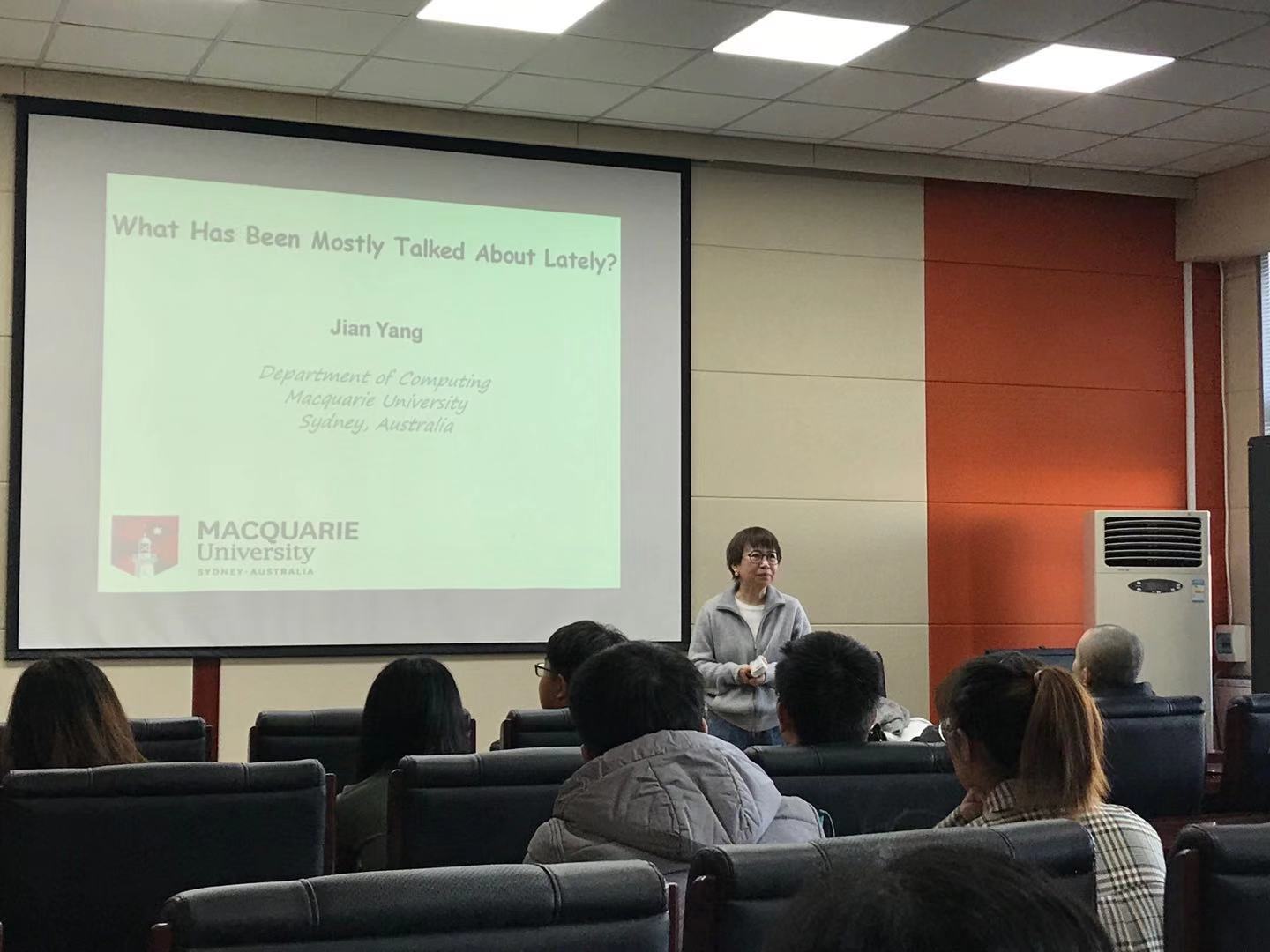 2019年11月15日上午,澳大利亚麦考瑞大学的杨坚教授应伟德体育官方网站邀请,在计算机楼A521作了题为“Twitter中的主题派生”的学术报告。