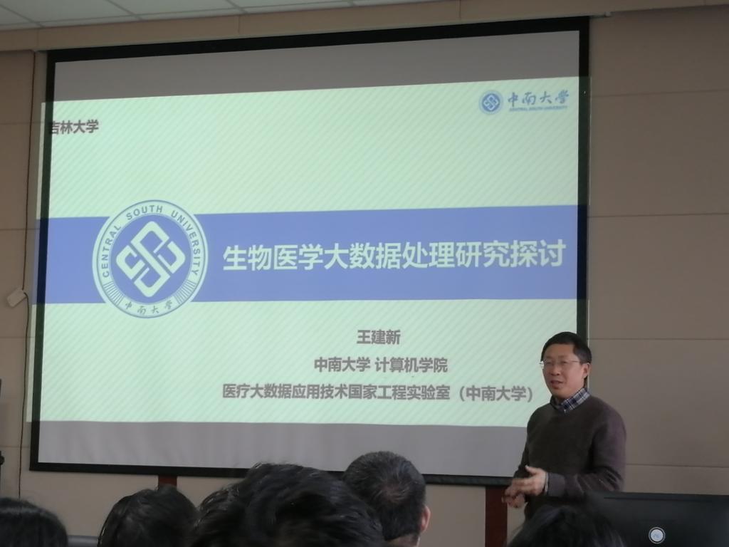 2019年12月13日下午14:30,王建新教授在伟德体育官方网站计算机楼A521作了题为“生物医学大数据+人工智能”的学术报告。