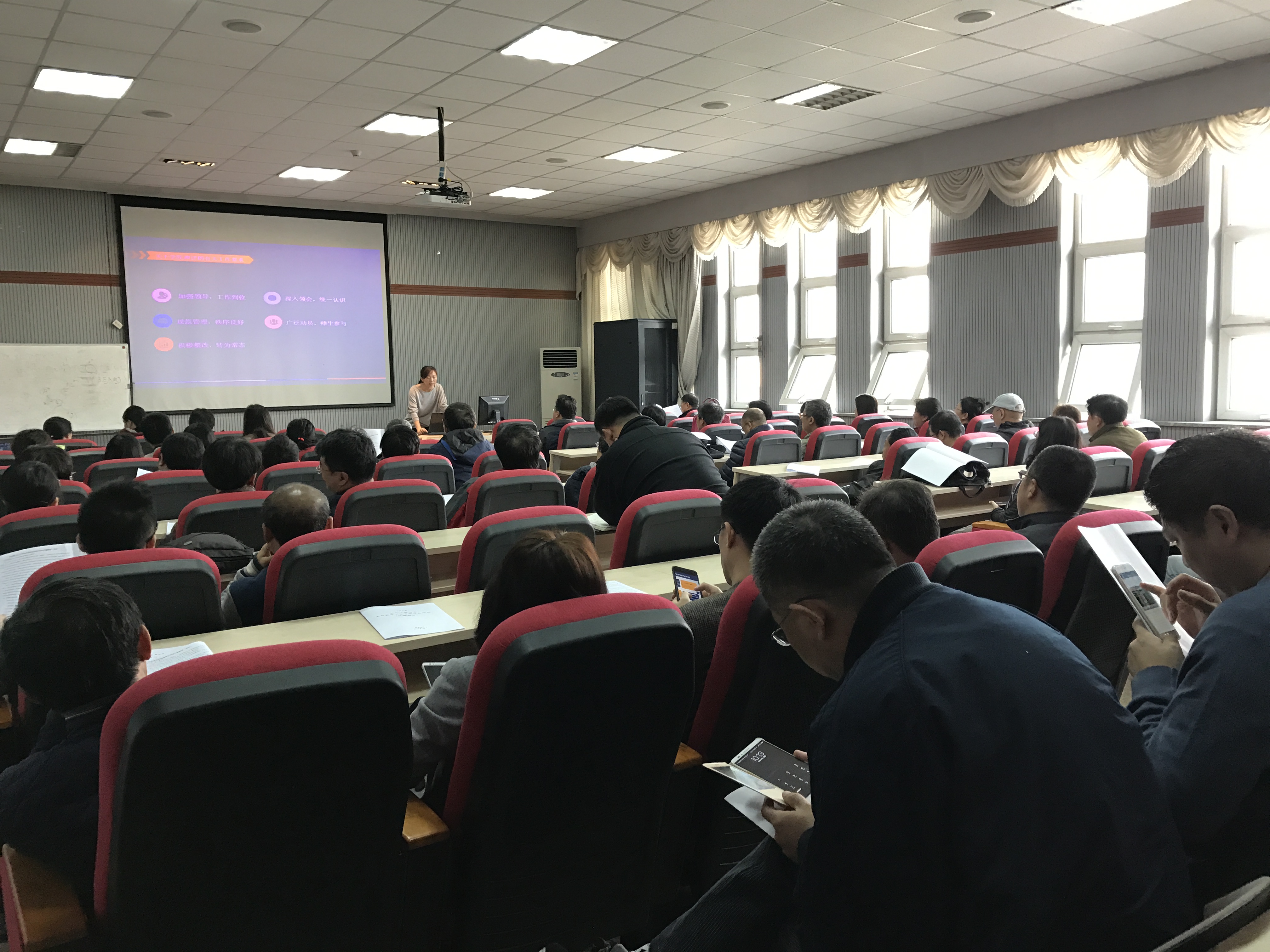 同时,两院还共同召开了教师迎评动员会,伟德体育官方网站教学副经理黄岚教授首先介绍了审核评估的基本情况,以及公司的迎评工作部署。之后,黄岚教授和软件公司教学副经理杨永健教授分别介绍了前期院内自评、校内自评的工作成果,并根据公司部属,结合公司的具体情况,对评估现场考查工作进行了安排。最后,分别对两院的相关文件进行了解读并回答了老师的提问,动员各位教师保证课堂的管理规范、秩序良好,向评估专家展示伟德体育官方网站师生风采。