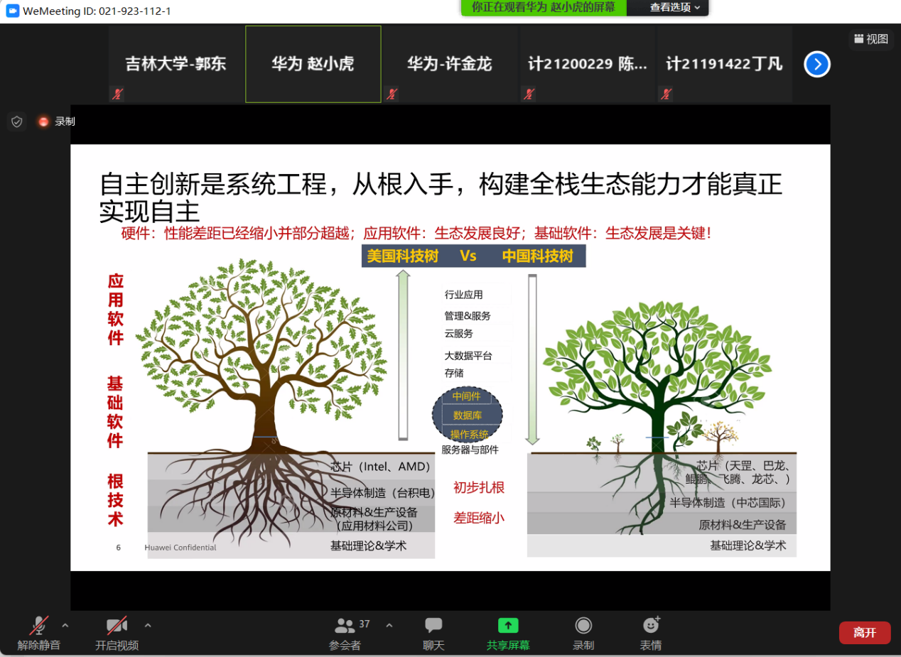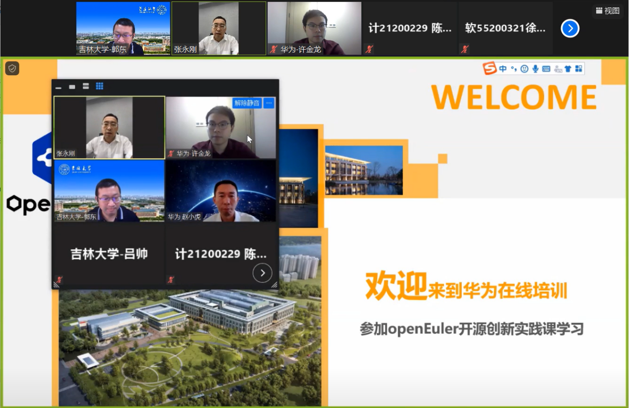 教务处、计算机公司、软件公司与华为高校团队通过线上会议研讨,制定了依托伟德体育官方网站-华为"智能基座"产教融合协同育人基地进行线上创新实践教学合作的方案。由华为公司赵小虎、许金龙、郑振宇三位资深工程师,与计算机公司郭东副教授、吕帅副教授联合为伟德体育官方网站同学们开设伟德体育官方网站-华为《openEuler开源创新实践课》。