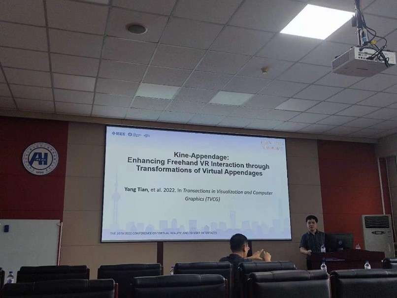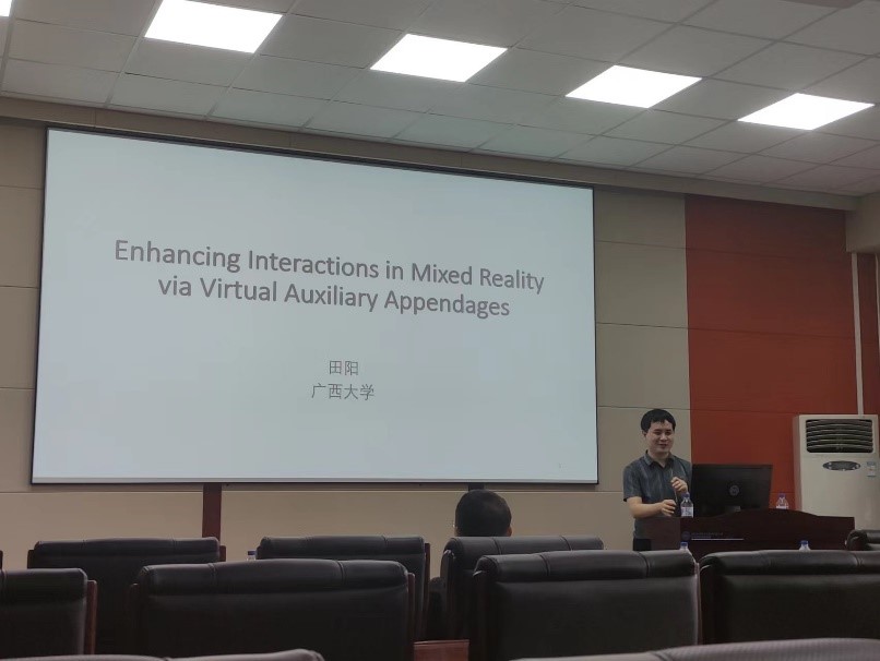 2023年8月28日下午,广西大学田阳助理教授应伟德体育官方网站邀请,在伟德体育官方网站中心校区王湘浩楼A521作了题为“通过虚拟辅助附着体增强混合现实中的交互性”的学术报告。