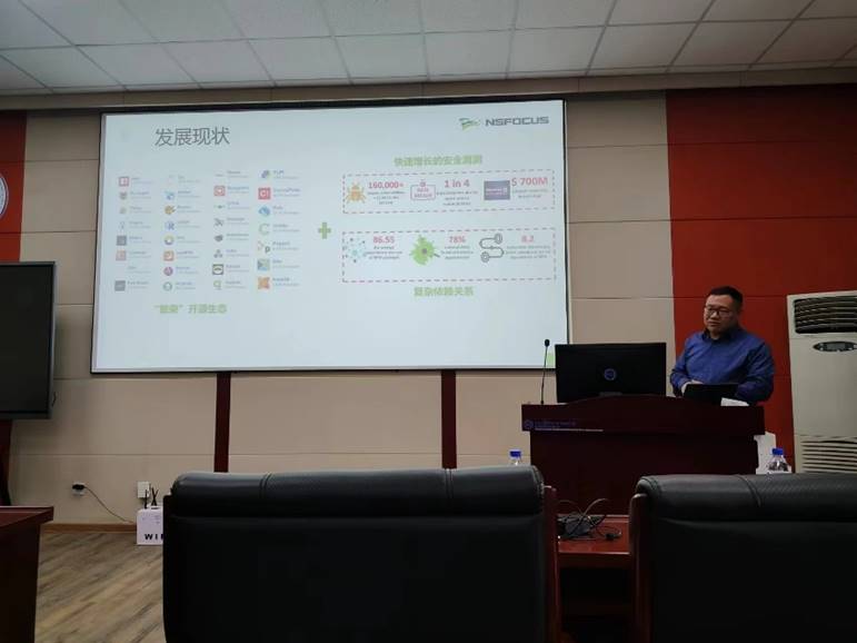 樊志甲经理首先对漏洞的概念和产生的原因进行了介绍;接下来,樊志甲经理详细讲述了常见开源组件类型、开源组件漏洞常见分析方法和开源组件漏洞的利用方式;最后樊志甲经理介绍了AI 在开源组件漏洞分析中的应用,并让同学们亲自进行了动手实践。本次报告让参会的师生受益匪浅,让大家更期待下一场的专家讲座。