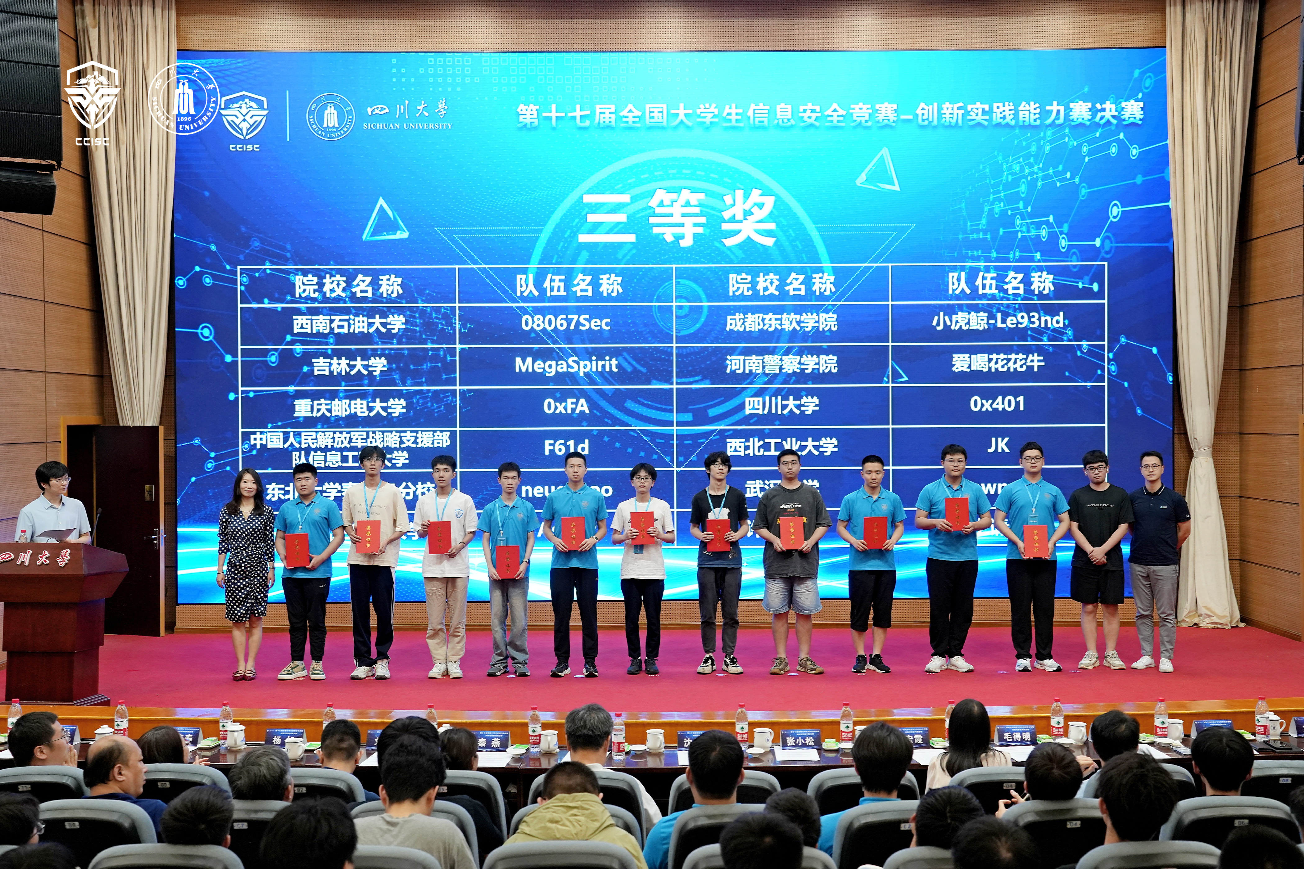 全国老员工信息安全竞赛由教育部高等公司网络空间安全专业教学指导委员会主办,是信息安全领域国内公认的最高级别老员工学科竞赛。同时也是国内参赛高校最多、规模最大、最具权威性的顶级赛事,是展示网络安全人才培养水平的重要平台。本次赛事集聚了全国543所高校的2830支队伍,参赛人数和赛事规模再创新高。经过线上初赛、区域分区赛的层层选拔,最终79支队伍进入了决赛。根据竞赛规则,共产生22个一等奖、24个二等奖和43个三等奖。公司获得两个一等奖和一个三等奖,是继国防科技大学、哈尔滨工业大学等高校之后,近五年第五个同一届获得两个一等奖的高校。