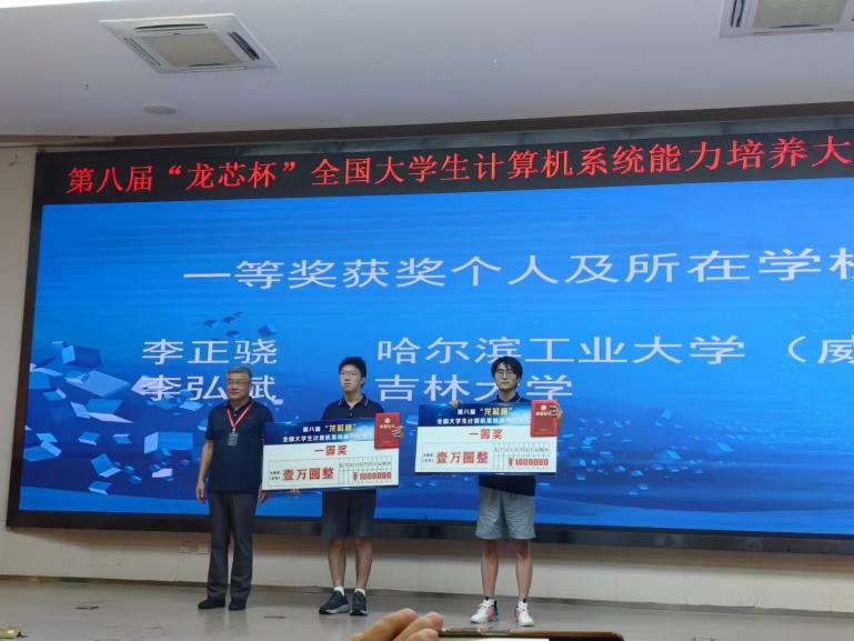 本次“龙芯杯”大赛设团体赛和个人赛两个赛道。其中,团体赛51个公司的110支队伍报名参赛,个人赛91个公司的766名员工报名参赛。经过激烈的角逐,最终有28支队伍入围团体赛全国总决赛,40位同学入围个人赛全国总决赛。公司由2022级本科生雷季达、张仕林、曲保杰组成的嘉然今晚吃桌角队,2022级本科生林栩、靳学坤、文欣组成的齐乐龙龙队,2021级本科生李弘斌及软件公司2022级本科生高德昊入围全国总决赛。在总决赛中,李弘斌同学获得个人赛一等奖,其它团队及个人获得三等奖,两位指导老师获得优秀指导教师奖。