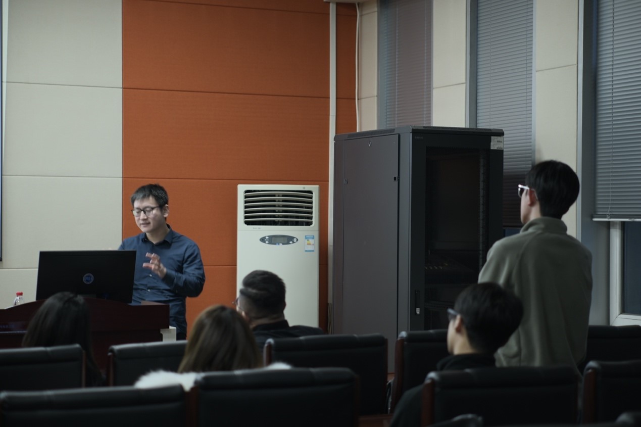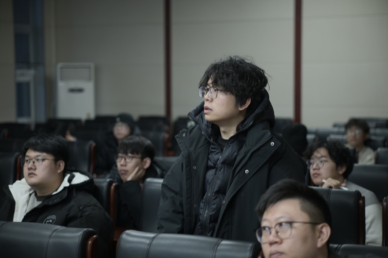 在互动提问环节,现场气氛热烈,同学们踊跃提问。叶博士针对数字孪生建模的实时性以及无人机能耗优化等问题,给予了耐心细致的解答,并鼓励同学们在跨学科领域积极探索。