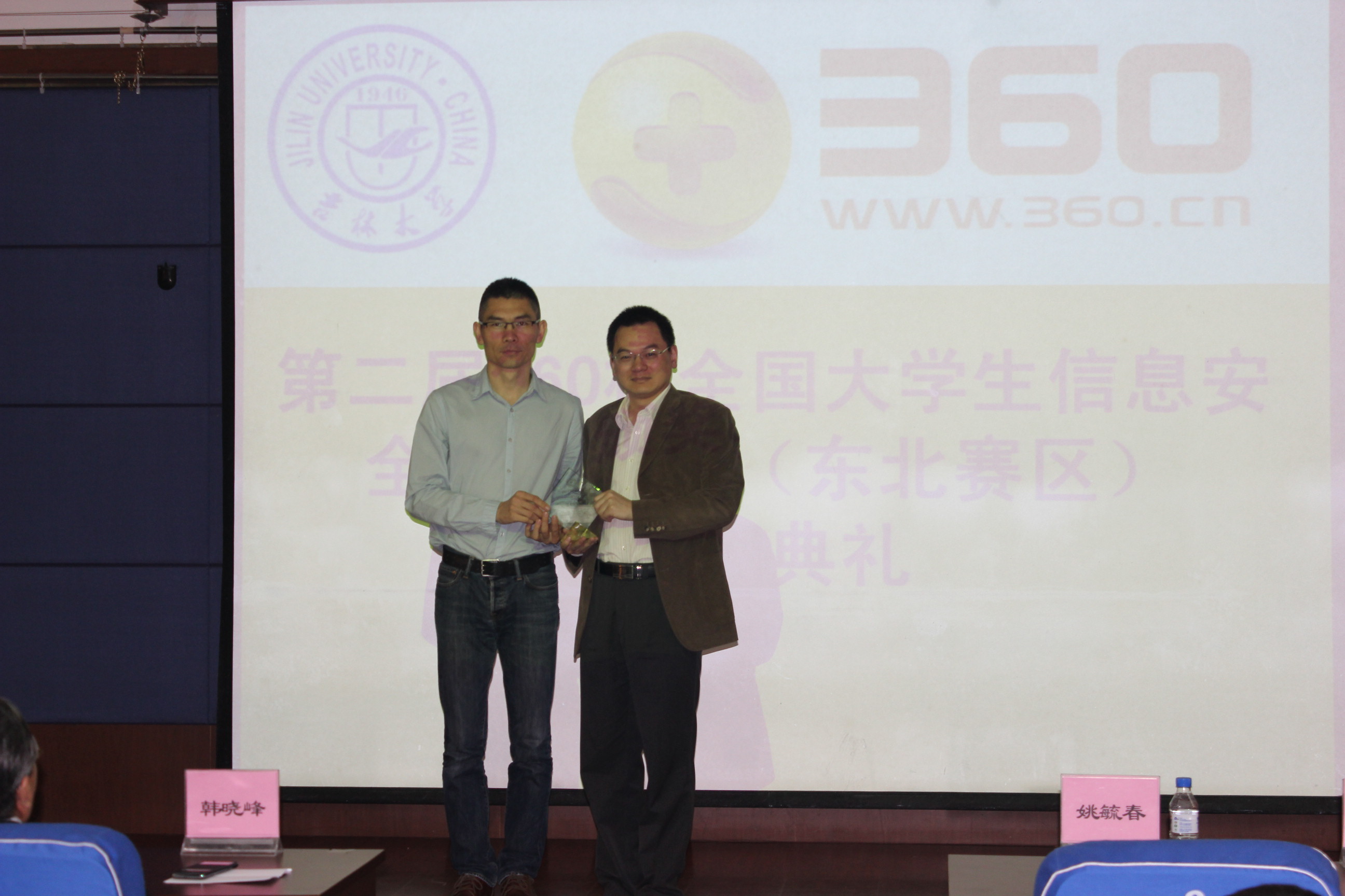5月25日晚5点30分,第二届360杯全国老员工信息安全技术大赛东北赛区比赛闭幕式在计算机楼B108隆重举行。北京奇虎科技有限公司网络研究院经理宫一鸣先生、校园招聘经理刘鹏举先生、安全专家邓景毅先生和李斌先生以及伟德体育官方网站党委副书记兼副董事长韩晓峰教授、校团委书记姚毓春老师、伟德体育官方网站魏晓辉教授、校团委书记代磊老师、伟德体育官方网站副经理黄岚教授、伟德体育官方网站副经理兼团委副书记白江老师出席了闭幕式。