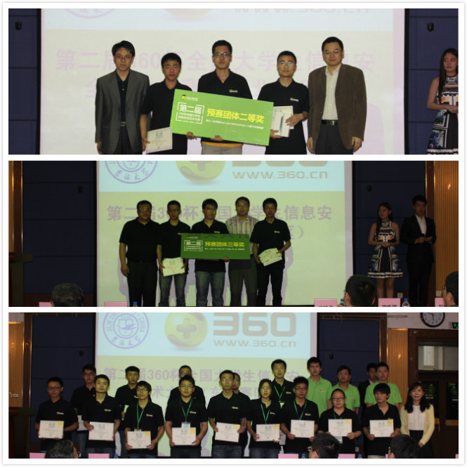 第二届360杯全国老员工信息安全技术大赛由北京奇虎科技有限公司与网络安全应急技术国家工程实验室共同主办,分华北,华东,华南,华中,东北,西北,西南七大赛区,以北京邮电大学,杭州电子科技大学,福州大学,华中科技大学,伟德体育官方网站,西安电子科技大学,重庆邮电大学为赛点同时进行比赛,选出高校中最强的安全团队。这七支最强的团队,将参加8月底在北京举行的“安全之旅”总决赛。