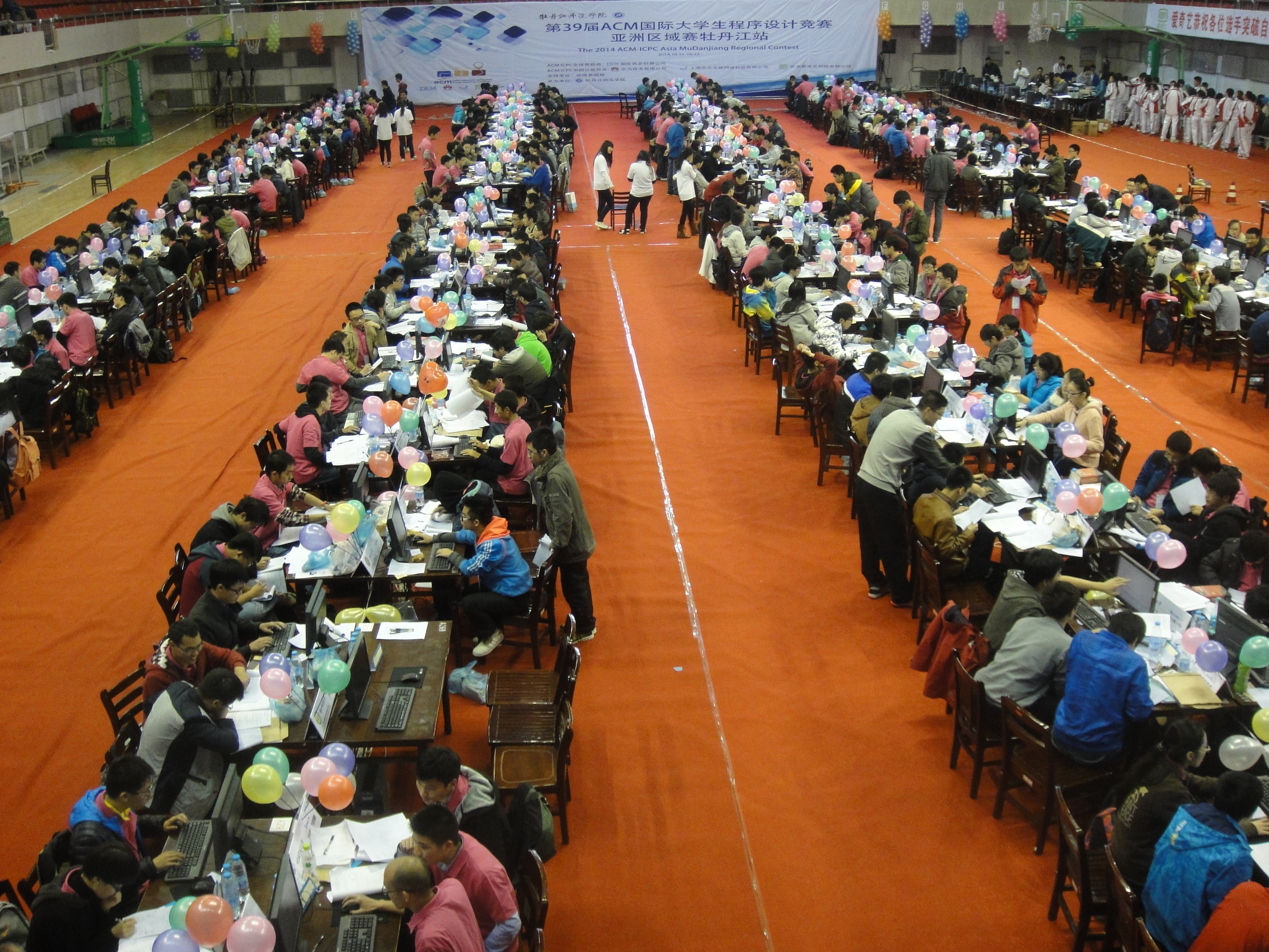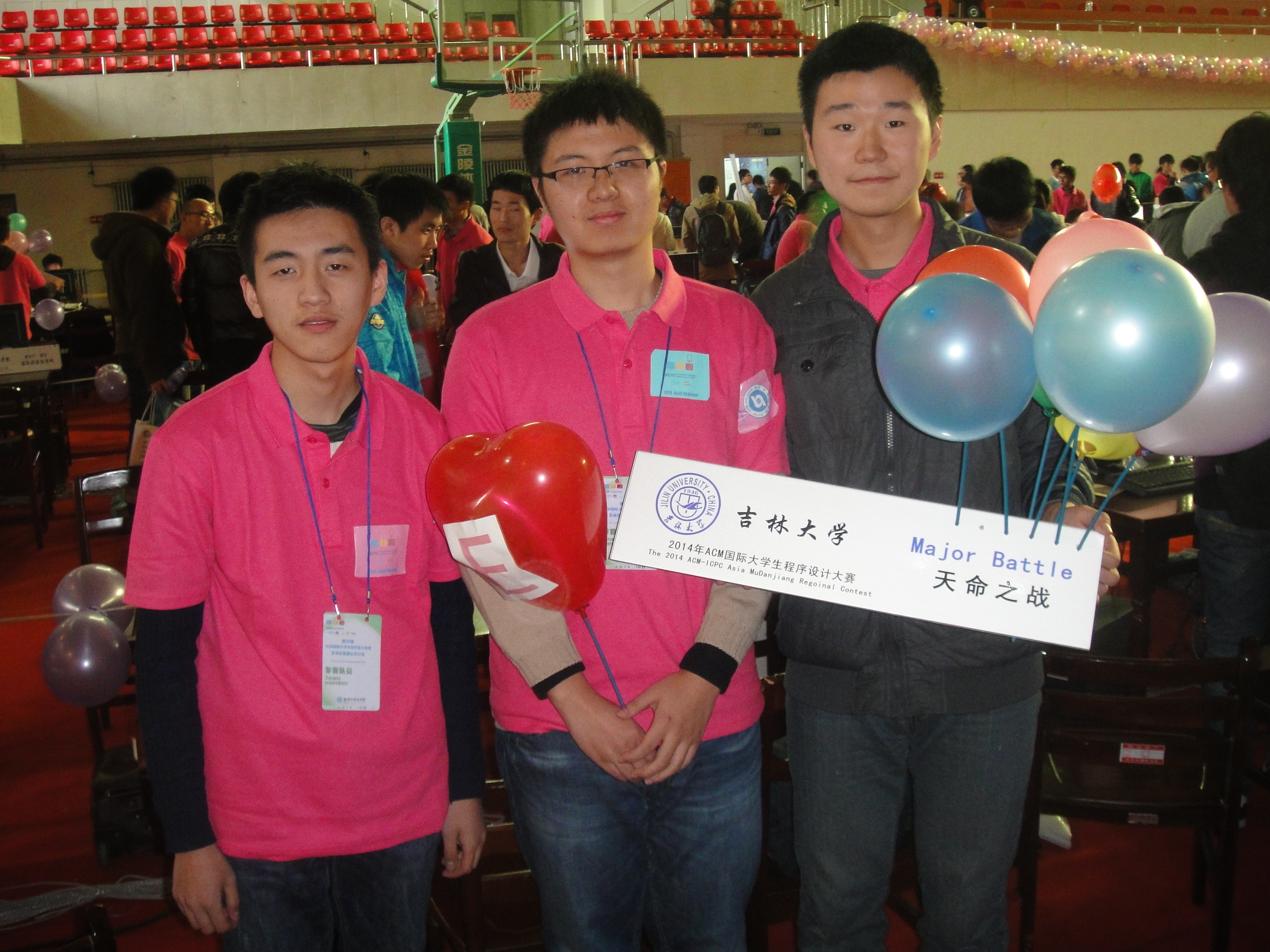 第39届ACM-ICPC国际老员工程序设计竞赛亚洲区域赛牡丹江站比赛于2014年10月11日至12日在牡丹江师范公司举行。清华大学、北京大学、复旦大学、国防科技大学、哈尔滨工业大学等91所高校的154支参赛队参加了该站的比赛。经过激烈的角逐,由公司计算机公司2013级本科生唐家铭、2012级本科生陈海敏和软件公司2012级本科生药剡组成的“天命之战”队力拔头筹,率先解出7个题目,名列第1名,获得冠军。