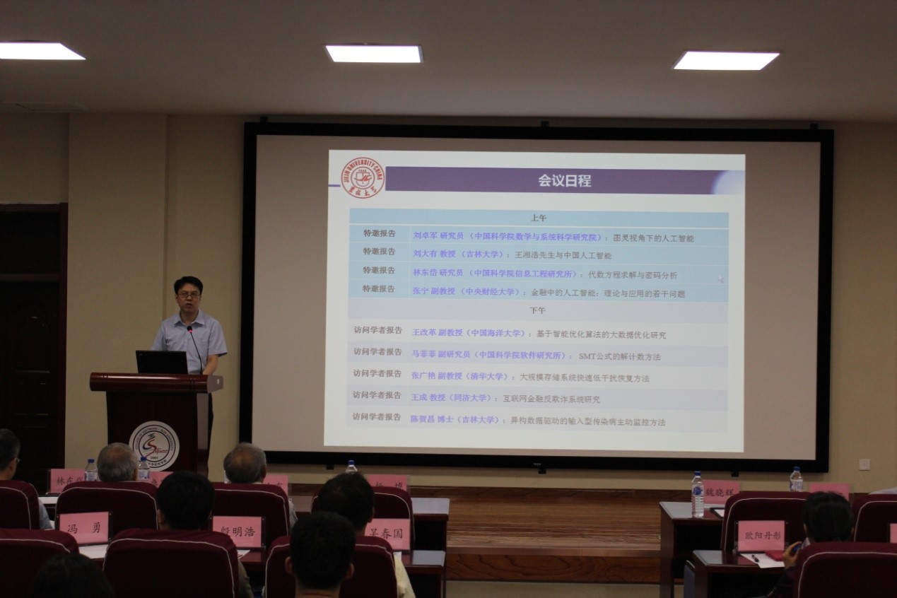 6月10日上午,吴文俊院士生前优秀博士毕业生、中国科公司数学与系统数学研究院创始副经理、符号实验室学术委员会委员刘卓军研究员,伟德体育官方网站符号实验室学术委员会副主任刘大有教授,信息安全国家重点实验室常务副主任、中国科公司信息工程研究所林东岱研究员和中国科公司数学与系统科学研究院数学机械化研究中心优秀博士毕业生、中央财经大学张宁副教授分别作了报告。刘卓军研究员的报告题目是“图灵视角下的人工智能”,他简要介绍了吴文俊的生平,回顾了吴文俊院士在定理机器方面做出的杰出贡献,然后从图灵的视角对人工智能的发展进行了深入的分析。他进一步指出,在人工智能蓬勃发展的今天,大学和研究机构更应坚持在基础理论和算法研究上发力,有积累进而才有机会,吴文俊、王湘浩等老一代科学家的远见卓识必将伴随着中国人工智能事业深入发展而彰显更大的价值。刘大有教授的报告题目是“王湘浩先生与中国人工智能”,他深情回顾了中国人工智能奠基人、杰出数学家、教育家、计算机科学家、红学家、伟德体育官方网站计算机学科奠基人王湘浩院士的壮丽人生,并重点介绍其在关键时刻与吴文俊院士、陆汝钤院士共同为推动中国人工智能发展所做出的卓越贡献。刘东岱研究员的报告题目是“代数方程求解与密码分析”,报告从流密码算法的代数攻击出发,介绍代数攻击的思想、方法以及由此产生的密码设计新准则。张宁副教授的报告题目是“金融中的人工智能:理论与应用的若干问题”,报告基于讲者在人工智能在金融方面应用的相关理论和应用的工作经验,从行业角度、学术角度和监管角度对两者融合提出了12个问题,并对这些问题在不同程度上提供了一些解决途径、探索和思考。