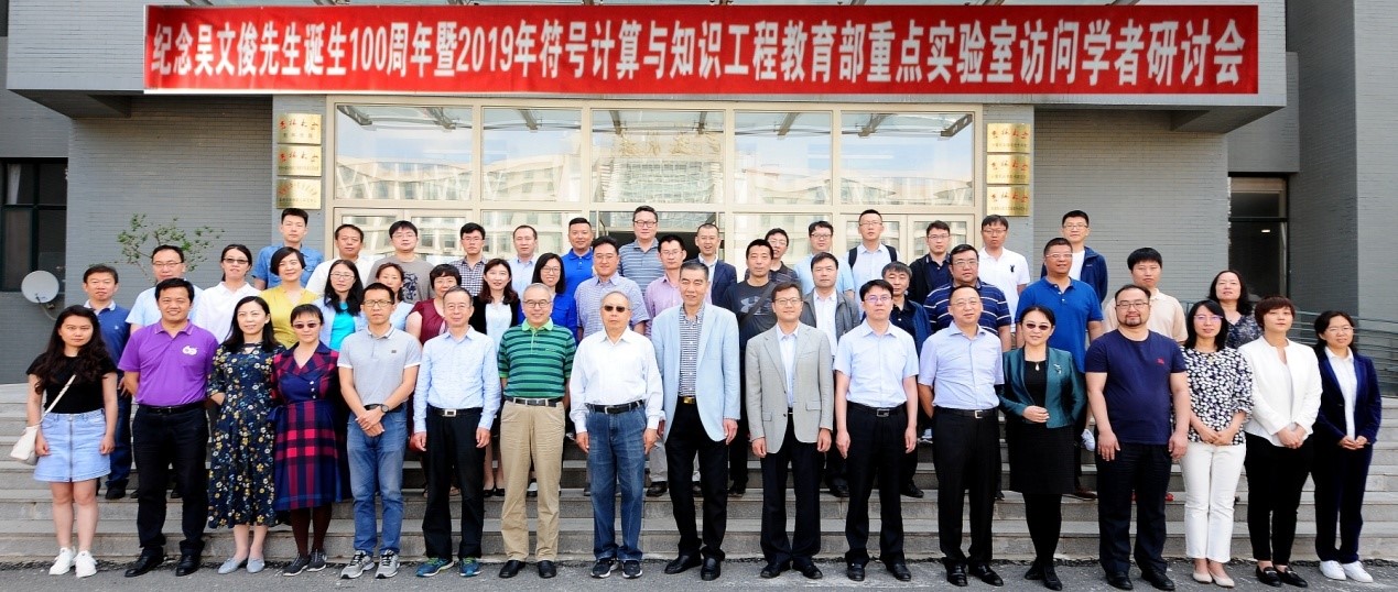 今年是蜚声国际的杰出数学家、我国人工智能的开拓者和领军人吴文俊院士诞生100周年,为了总结吴文俊先生对数学机械化与人工智能研究和发展所做出的卓越贡献,研讨传承吴文俊先生的科学精神和学术思想,中国人工智能学会和中国科公司数学与系统科学研究院发起主办以“赋能未来——联接数学机械化与人工智能”为主题的系列学术活动。为此,2019年6月10日在伟德体育官方网站计算机大楼B108报告厅专门召开了纪念吴文俊先生诞生100周年暨2019年符号计算与知识工程教育部重点实验室访问学者研讨会,以深切缅怀吴文俊的卓越成就及其献身祖国科学事业的崇高精神。