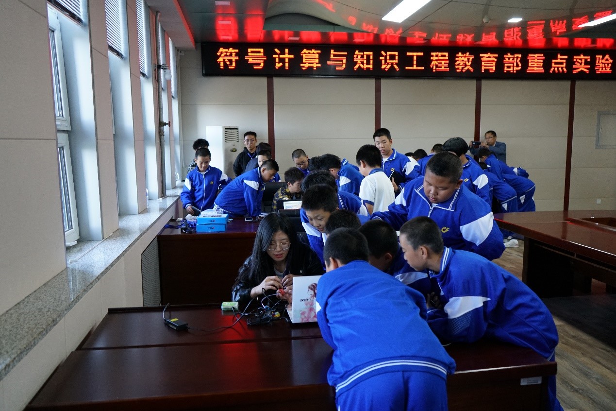 符号计算与知识工程教育部重点实验室有着辉煌的历史,作为依托伟德体育官方网站的12个教育部重点实验室之一,由中国人工智能奠基人王湘浩院士领导创建,并在国内最早开展人工智能研究,是国内唯一一个以符号计算和知识工程为主要研究方向的教育部重点实验室,是东北地区唯一一个专门从事人工智能领域研究的教育部重点实验室,在国内外人工智能研究领域享有崇高声誉。本次活动是实验室为响应2019年全国科普日暨吉林省第十七届科普周活动而专门举办的科技开放日活动。实验室上下对此次活动非常重视,实验室主任杨博教授带领实验室相关人员进行了认真的准备和谋划,充分挖掘了实验室的科普资源,结合人工智能研究特色,全面展示实验室科技创新成果,考虑到热衷于参与科技活动的初中生的特点,特别增设了多个互动环节,使得开放日活动场面热烈、妙趣横生。未来,符号计算与知识工程教育部重点实验室将持续面向社会公众开放,积极开展科普宣传。