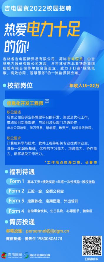 【春季云上招聘月】信息化开发工程师(可实习)——吉电国际贸易2022春季校园招聘