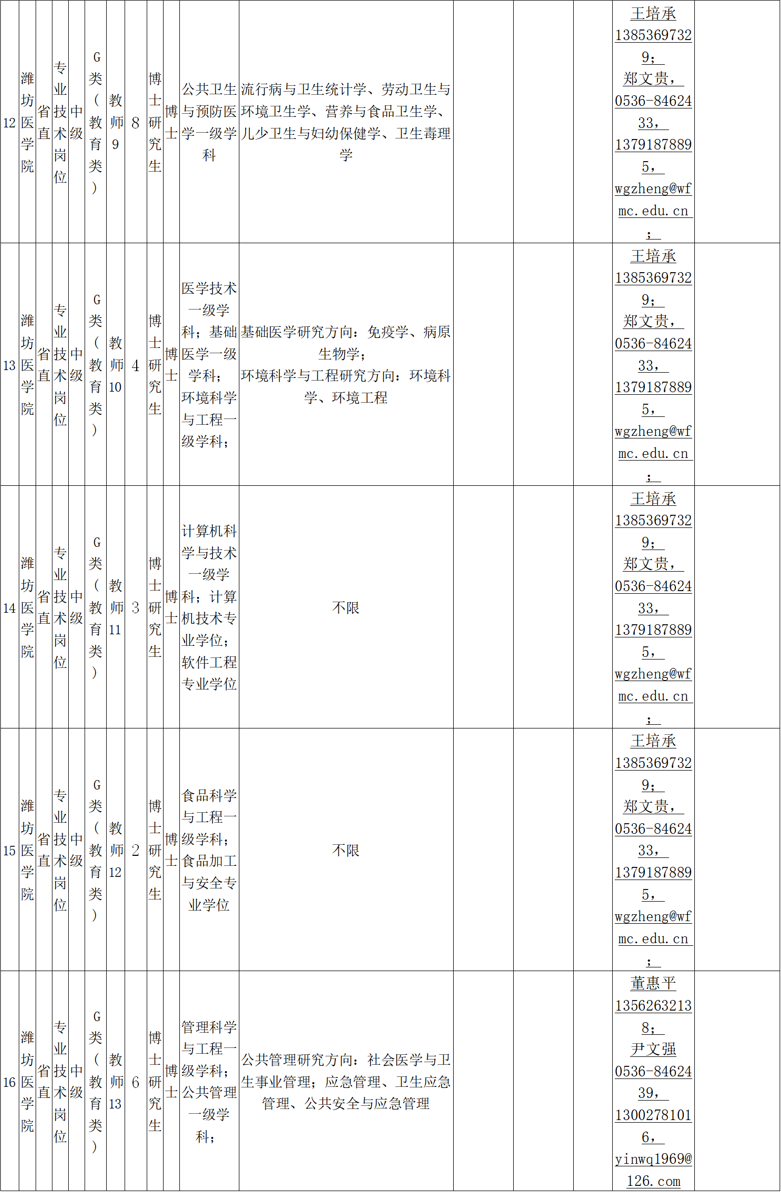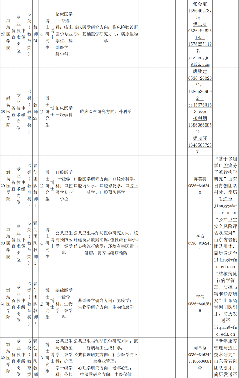 电子信箱:zhaopin@wfmc.edu.cn(应聘者可通过电子邮件方式报名,将个人应聘材料发送到各需求单位邮箱并抄送wfyxyrsc@126.com。应聘邮件标题:应聘岗位名称-姓名-学历-专业-毕业院校-中国博士人才网)